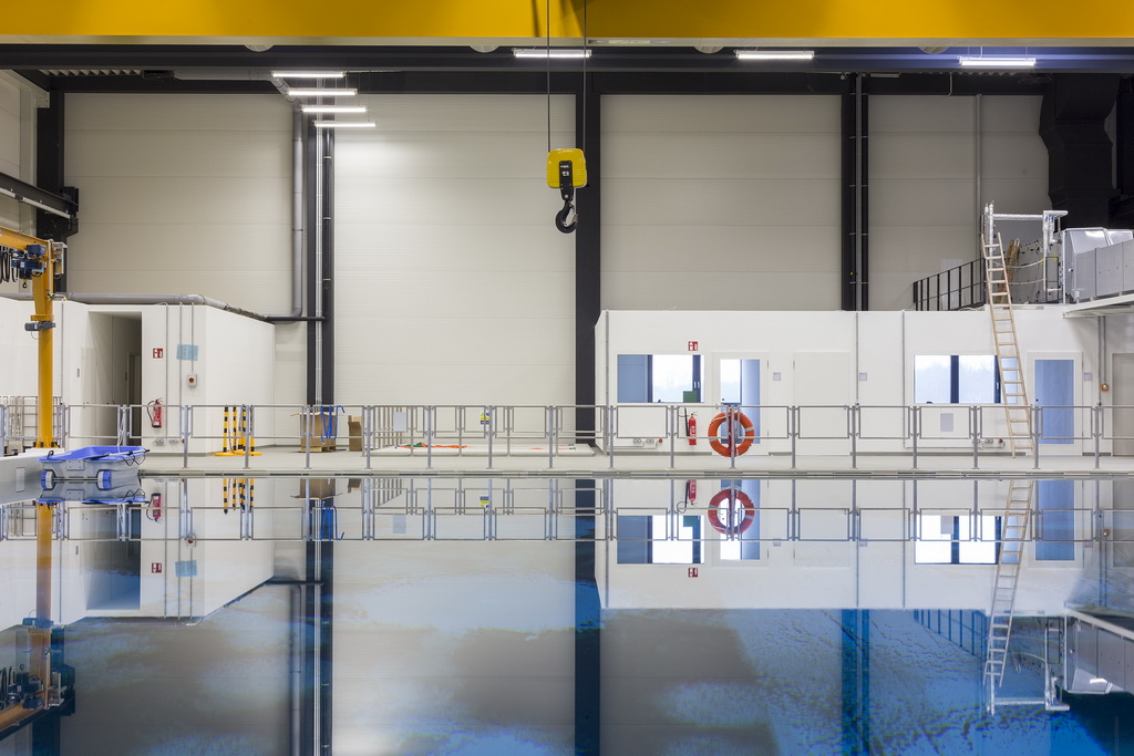 3,4 Millionen Liter Salzwasser fasst das neue Testbecken für Robotik-Forschung, das jetzt im Neubau des Deutschen Forschungszentrums für Künstliche Intelligenz in Bremen eröffnet wurde. - Datei öffen/herunterladen (jpg, 222.5 KB) -