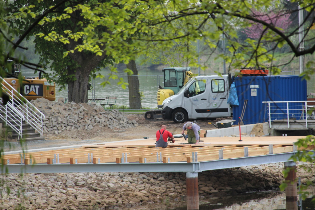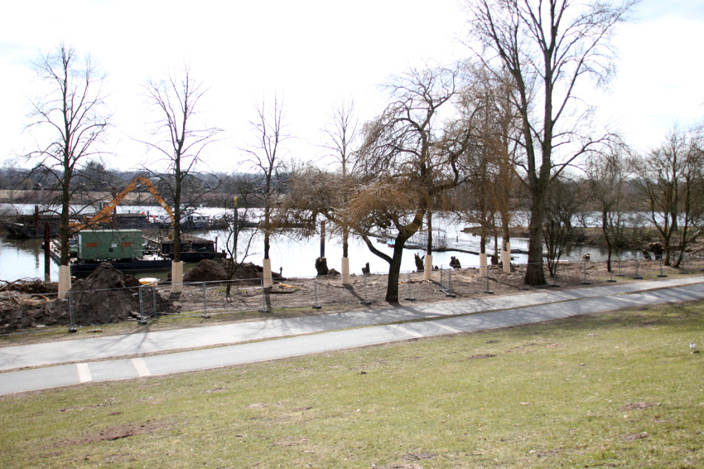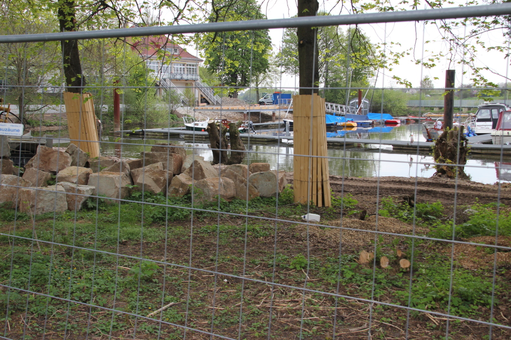 Damit bald auch wieder Sportboote hier anlegen können werden das Hafenbecken saniert und neue Uferbefestigungen angelegt. - Datei öffen/herunterladen (jpg, 929.9 KB) -