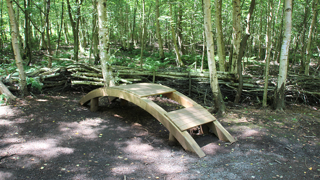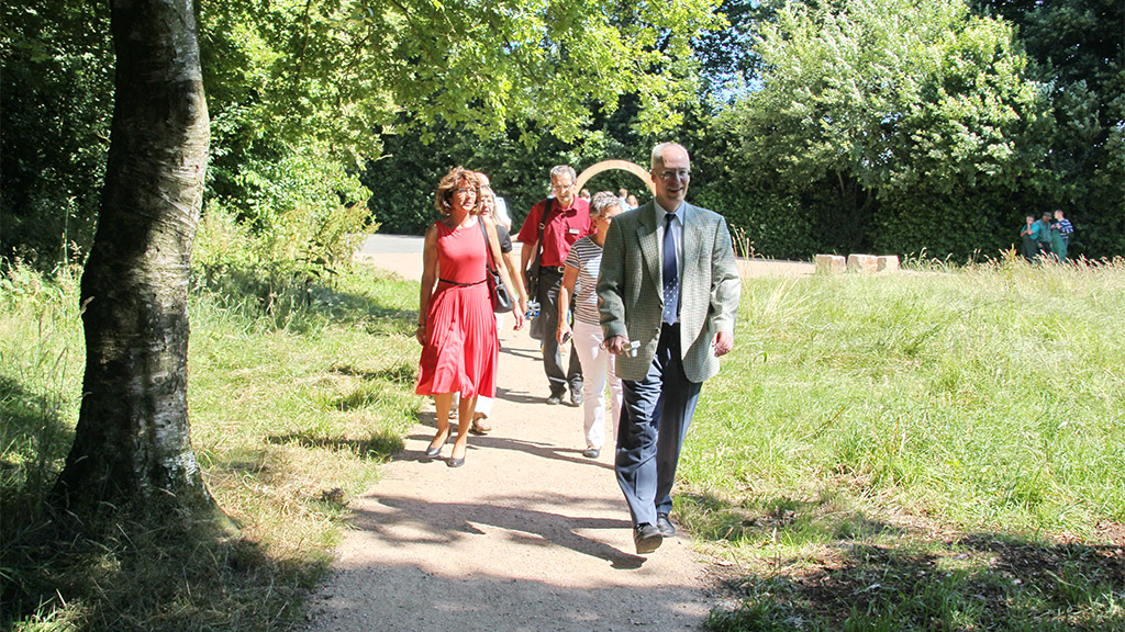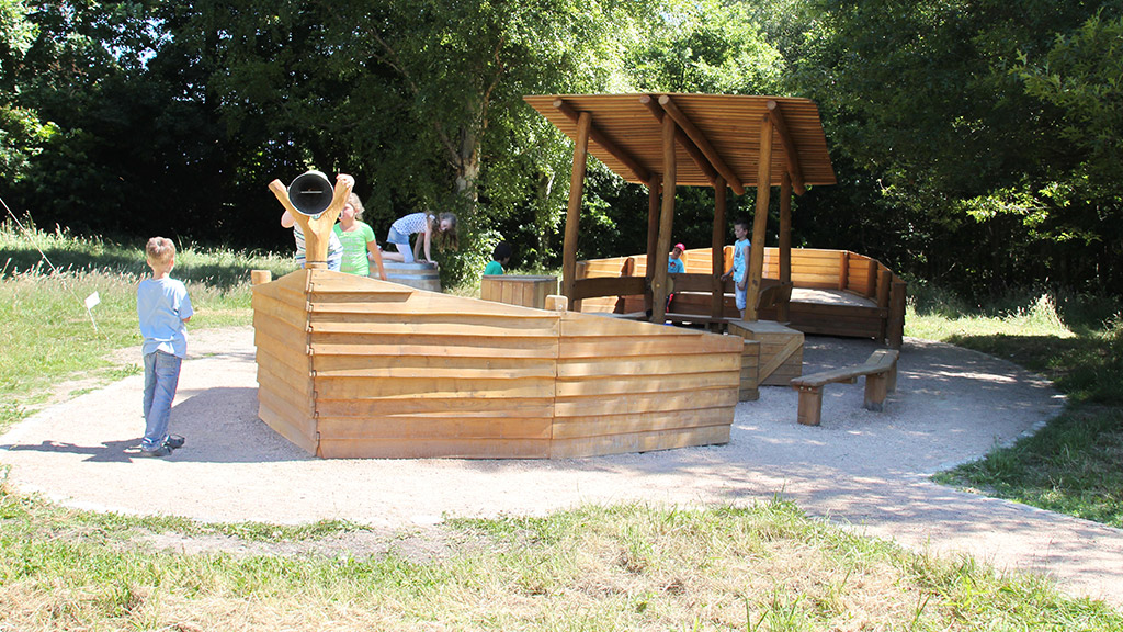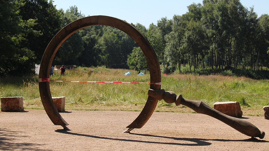 Der zweite Eingang zum Erika-See wird durch eine liegende Lupe gekennzeichnet, die als Sitzkreis von Gruppen verwendet werden kann. - Datei öffen/herunterladen (jpg, 323.2 KB) -