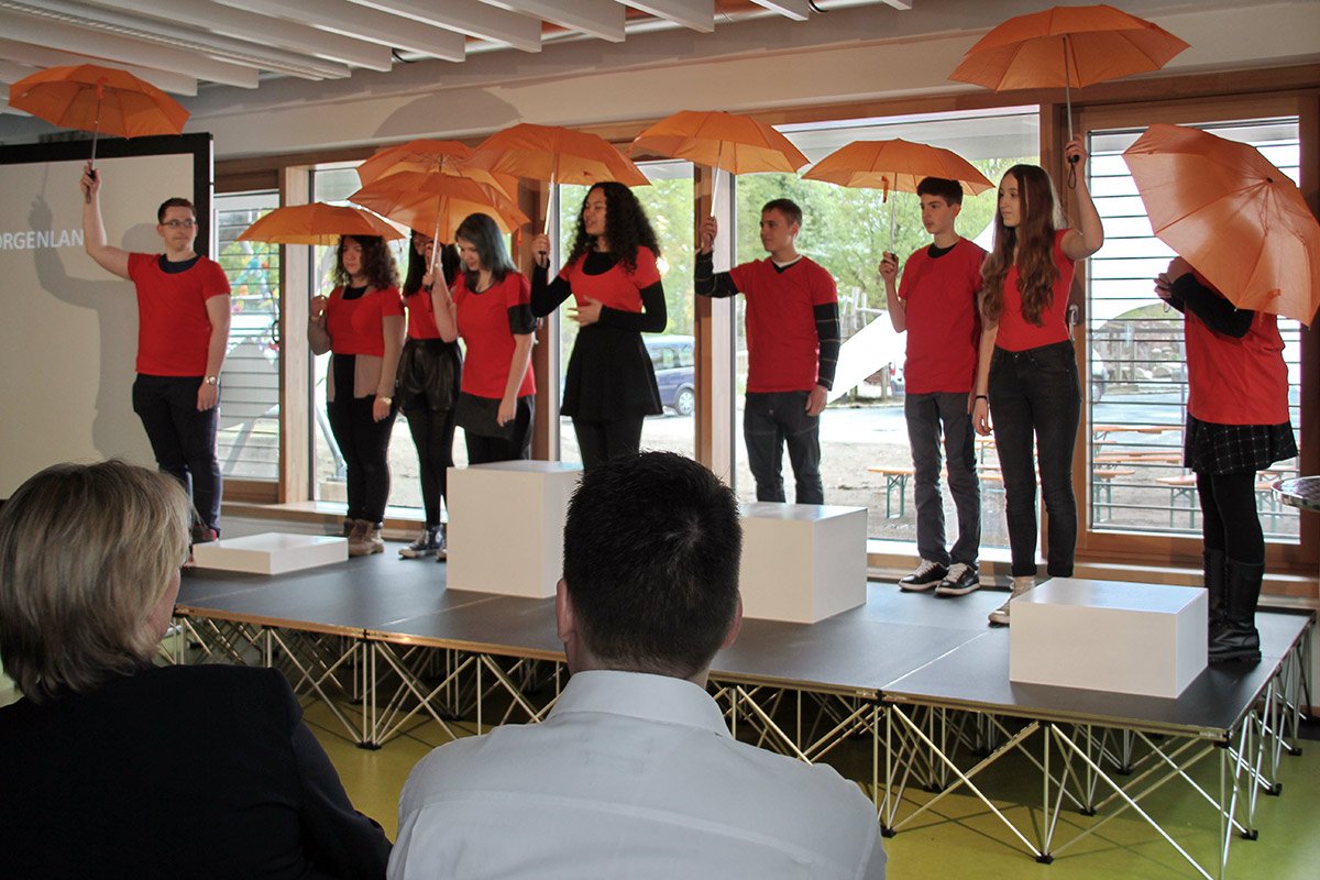 Die Tandem Guides, Schülerinnen und Schüler der neuen Oberstufe Gröpelingen und der Gesamtschule West zeigten einen Auszug aus ihrer Theaterperformance - Datei öffen/herunterladen (jpg, 248.2 KB) -