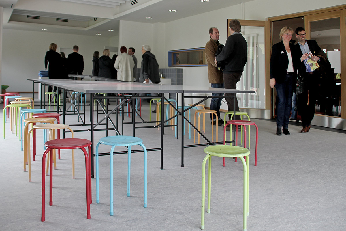 Das QBZ wurde mit dem Schulgebäude verbunden. Im unteren Stockwerk befindet sich auch eine Mensa für die Schülerinnen und Schüler. - Datei öffen/herunterladen (jpg, 182.8 KB)