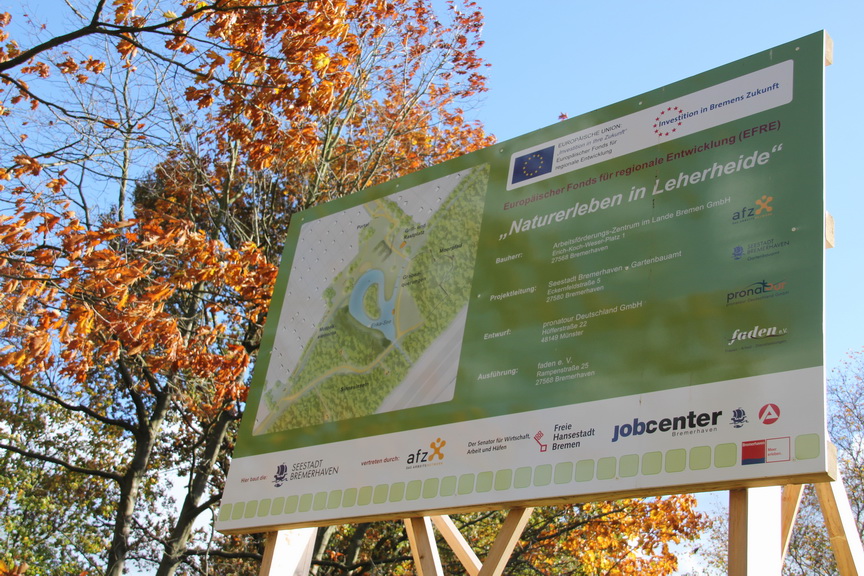 Signs at the entrances to the lake show the already implemented and planned areas. - Datei öffen/herunterladen (JPG, 288.6 KB) -