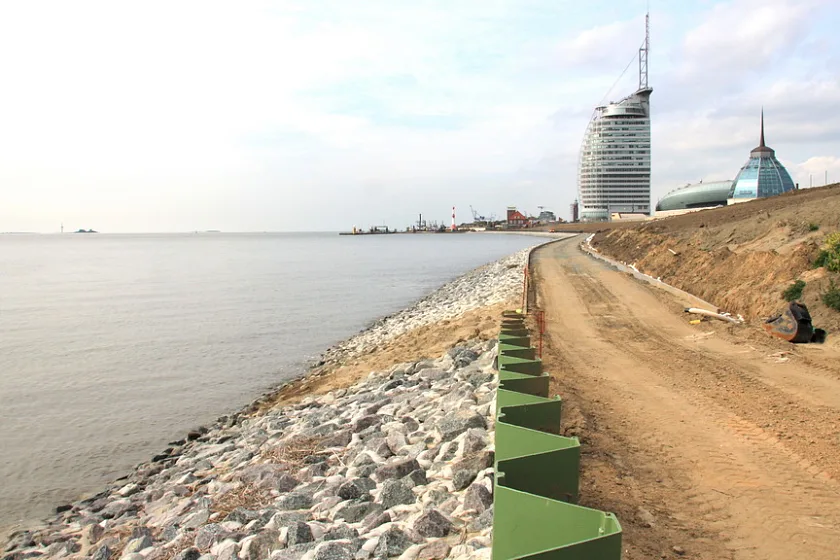 As part of the project entitled Ecological development of the Weser beach riverbank, an area of approx. 1000 m² with the only fairly natural riverbank section in Bremerhaven’s inner city area will be ecologically enhanced via dune-like rises and the planting of dune vegetation. This will make it possible for residents and visitors to experience the potential of nature by the Weser. Natural landscape structures will be added to the dyke, which was recently raised, and this will help to improve the area and the landscape.