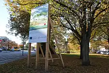 A new direct pathway is being built between the Timber Port and the traffic lights at Elbinger Platz, to recall the old canal link. The green areas around the Memento maris sculpture will be enlarged and made more open (the raised flower beds are being lowered, lawns are being laid, the green area re-designed) in order to create a line of sight from the Timber Port to the Trading Port. In order to make the area more attractive, it is being furnished and illuminated.