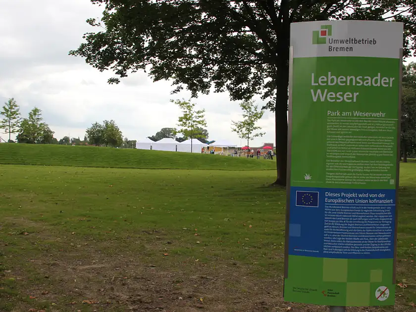 The new park retains the existing routes to the park at the Jakobsberg and the Wehrschloss. The latter building used to be a youth centre and is currently being redeveloped as a catering establishment with a beer garden, thus nicely rounding off the parkland. The park has been funded by the European Regional Development Fund, the Senator for Environment, Building and Transport, and the Wohnliche Stadt foundation. The green areas which now form the park include some private land owned by the operator of the Weser hydroelectric power station.