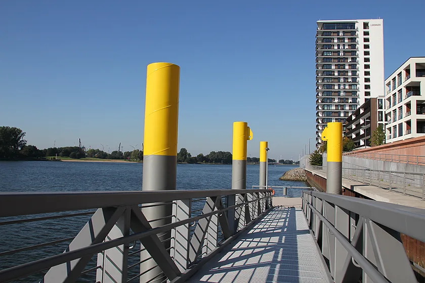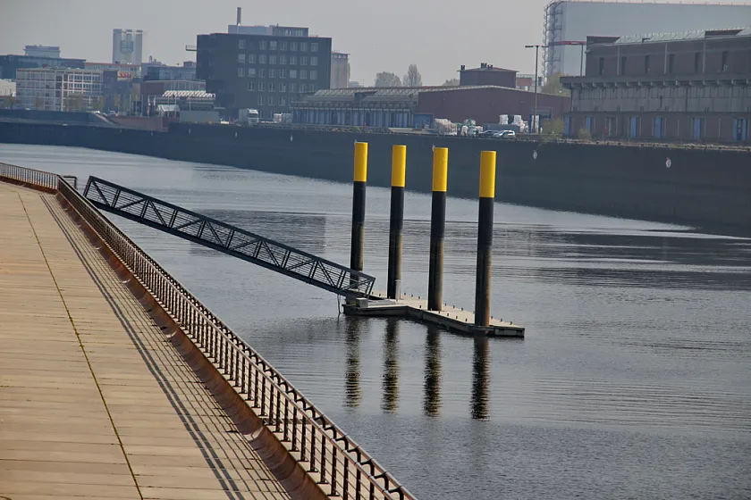 Der neue Bootsanleger an der Europahafen-Einfahrt etwa auf Höhe des Landmark-Towers ist fertiggestellt. Neben dem Anleger Martinianleger in der Innenstadt und dem Anleger am Pier 2 gibt es nun eine weitere Zu- und Ausstiegsmöglichkeit bei Fährfahrten auf der Weser. Nun können hier auch regelmäßig Schiffe im Rahmen der Weser- und Hafenrundfahrten anlegen.