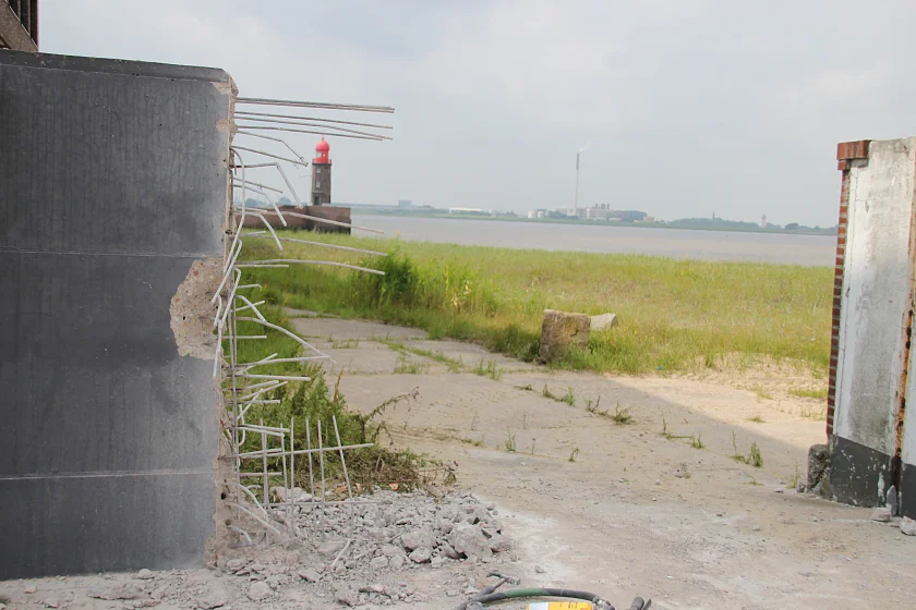 Not least, the renovation concept includes the demolition of rotten timber constructions on the site and the erection of new reinforced concrete buildings, the fitting of flood-protection flaps for windows and doors and the renovation of the link building and the solid building housing the ticket office, the beachmaster and the storage room.